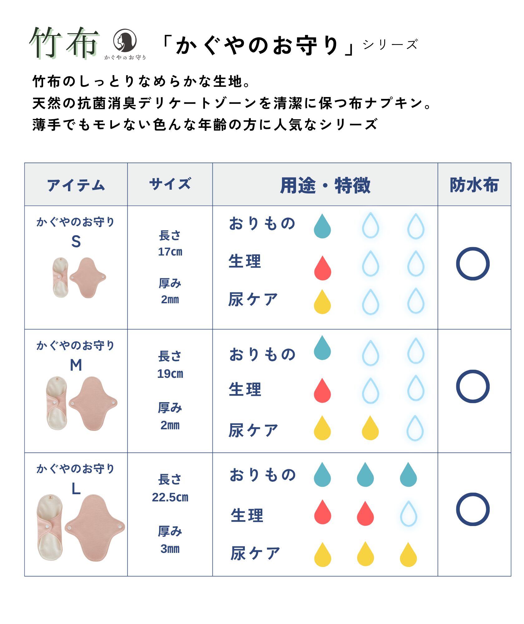 ご自身の経血の状態を把握しやすくなり、生理周期や体の変化に意識が向きやすくなります。生理時以外にも、冷え対策にご使用いただけます。